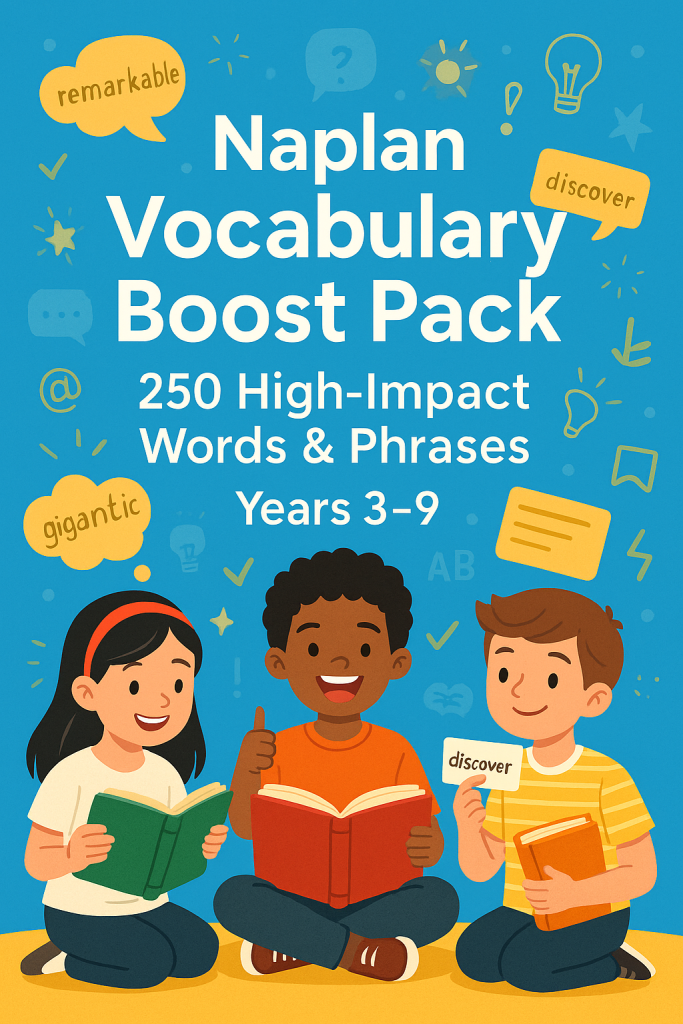 Naplan Vocabulary Boost Pack: 250 High-Impact Words & Phrases (Years 3–9) Naplan Books, Writing / horchinglee@gmail.com Naplan Vocabulary Boost Pack: 250 High-Impact Words & Phrases (Years 3–9) Read More »