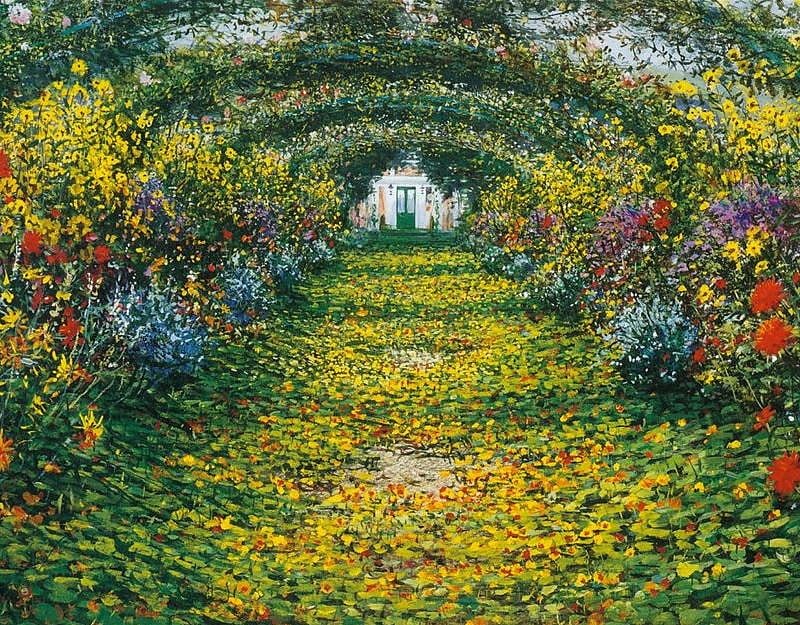 A narrow stone path twisted through the vibrant chaos, inviting wanderers deeper into the blooming paradise.