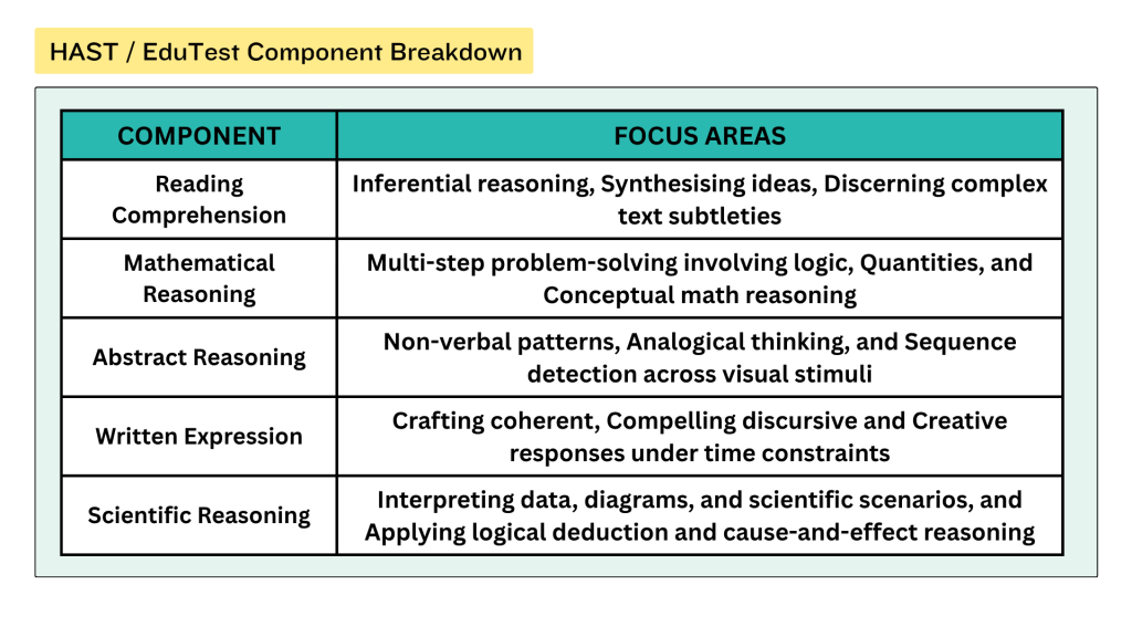 - Timed mock exams replicating real test conditions for HAST, EduTest, and scholarship assessments