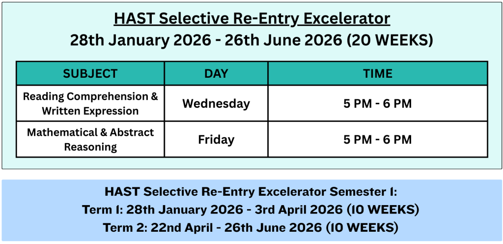 Enrol your child in our HAST Selective Re-Entry Excelerator program and let’s aim to make learning a joyous journey!