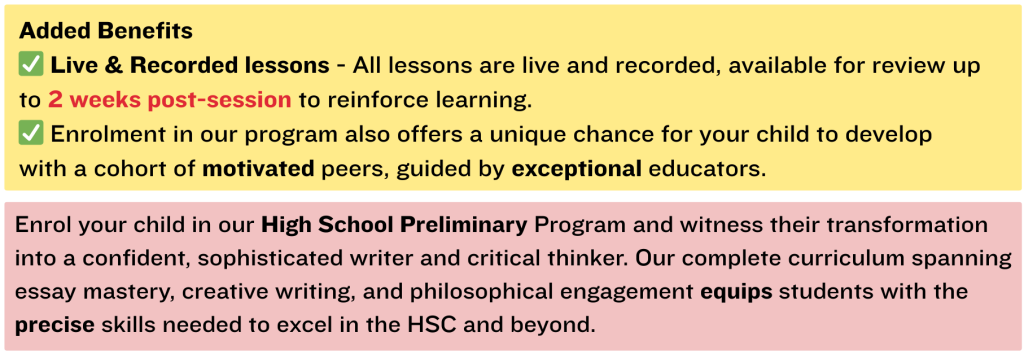 Unpacking HSC-style essay questions and identifying key directive terms. Constructing specific, arguable thesis statements tailored to each question. Planning three-paragraph essays with distinct thematic and technique focus. Applying the “so what?” test to every piece of analysis.