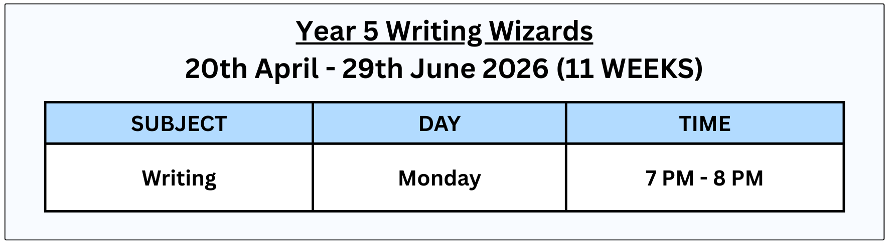 All lessons are live and will be recorded for review up to 2 weeks after the course ends. This gives your child the opportunity to revise and reinforce what they’ve learned. Enrol your child in our Scholarly Writing Wizards program and let’s aim to make learning a joyous journey!