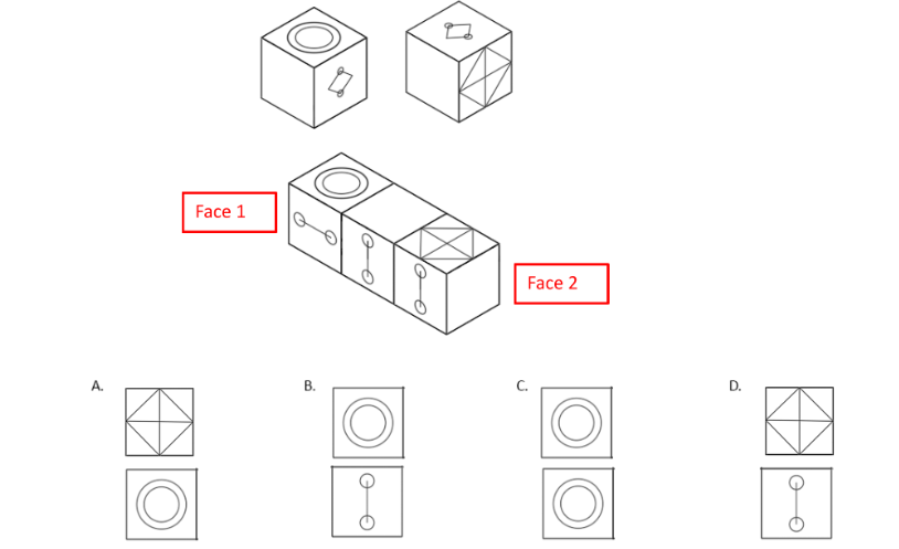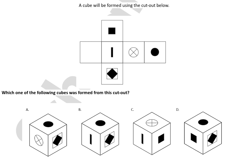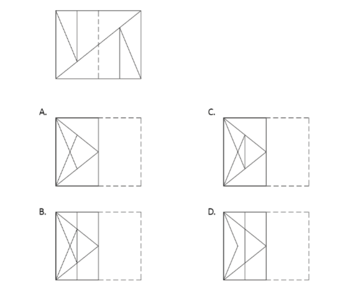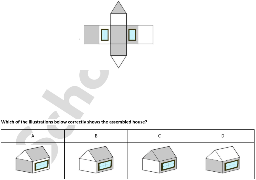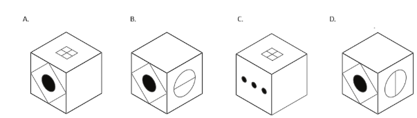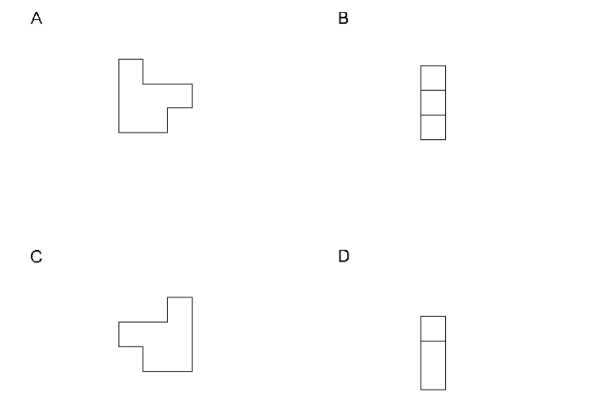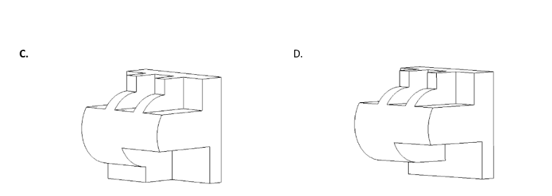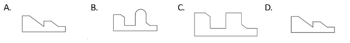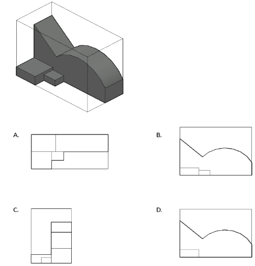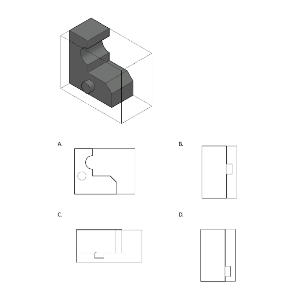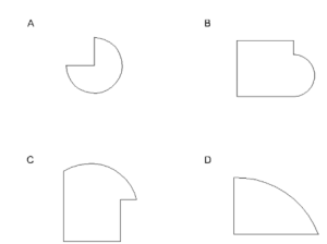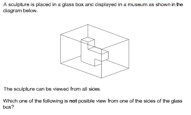 A sculpture is placed in a glass box and displayed in a museum as shown in the diagram below. The sculpture can be viewed from all sides. Which one of the following is not a possible view from one of the sides of the glass box?