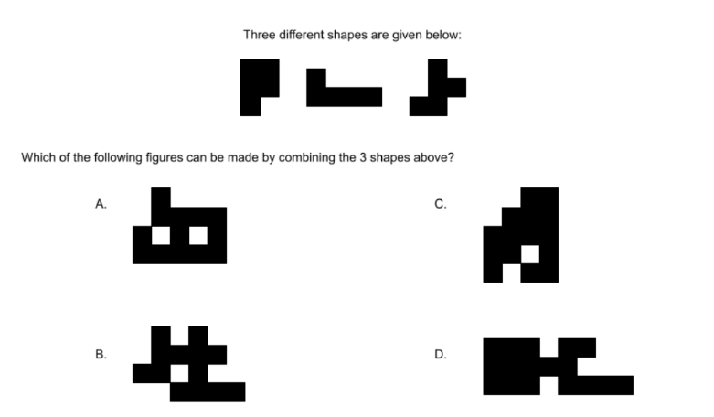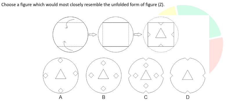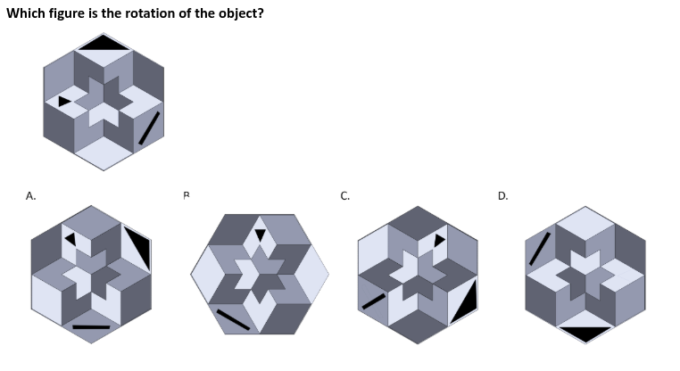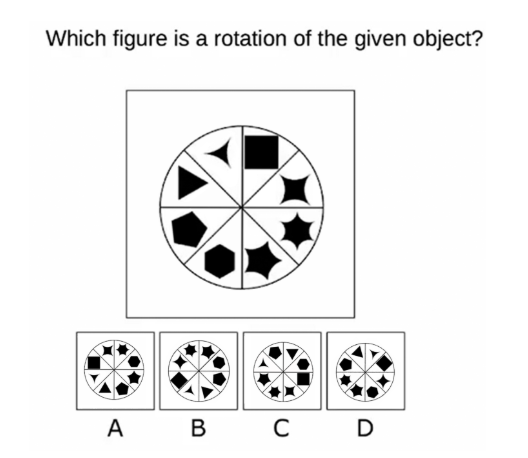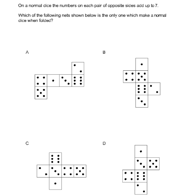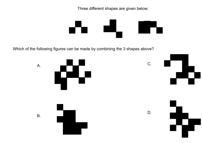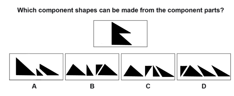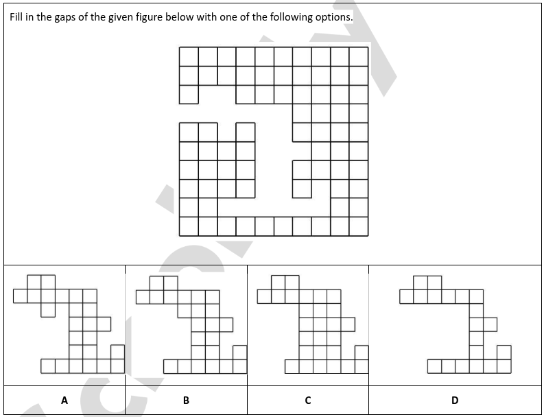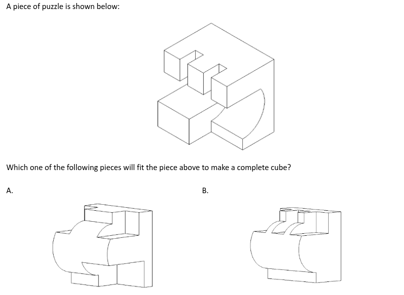 A sculpture is placed in a glass box and displayed in a museum as shown in the diagram below. The sculpture can be viewed from all sides. Which one of the following is not a possible view from one of the sides of the glass box?