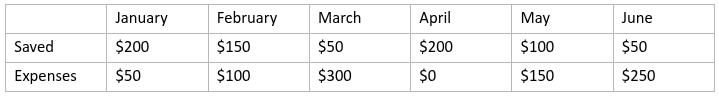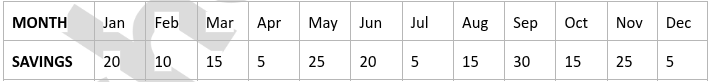 Ara wants to track her savings each month. Listed below is the amount of her savings per month.
