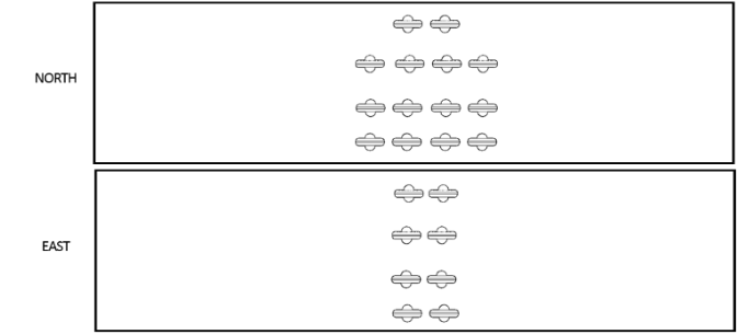 A fleet of UFOs was observed, and pictures taken of them at the same time from different places: one looking from the north and the other looking from the east. What is the largest number of UFOs that could be in the fleet?