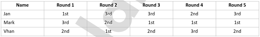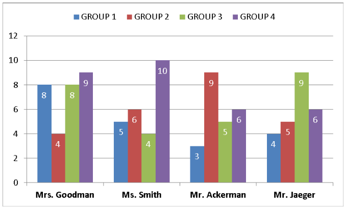 Olive conducted a survey about her classmates’ most favourite teacher. The surveyees rated the teachers from 1-10, with ten being the highest. The survey results are shown in the table below: