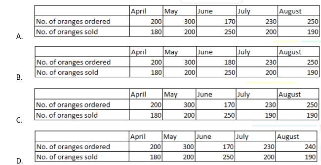 Emily has a flower stand at a market. The available colours of the flowers she has are blue, red, yellow, and purple.