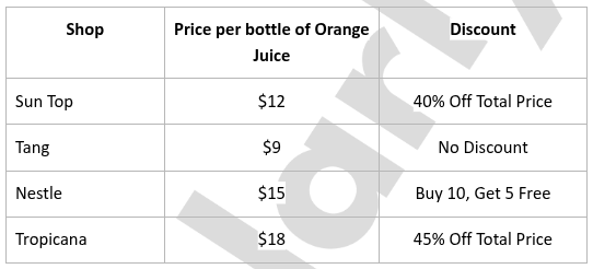 Rolly, a fisherman, wants to sell his fishes for an affordable price. Four fish markets offered their prices to him. Shown in the table below are their offers.
