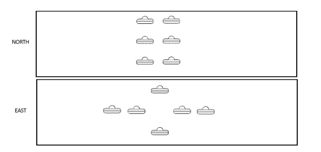 The type of rubbish bin that is present at each of the six points is governed by the following conditions: