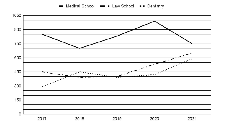 The data below shows the number of people applying for a scholarship at a university.