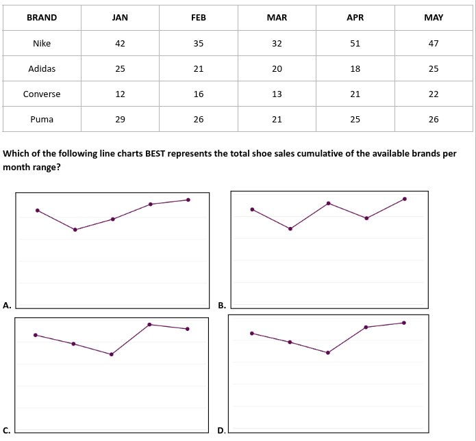 Which of the following line graph best represents the data above?