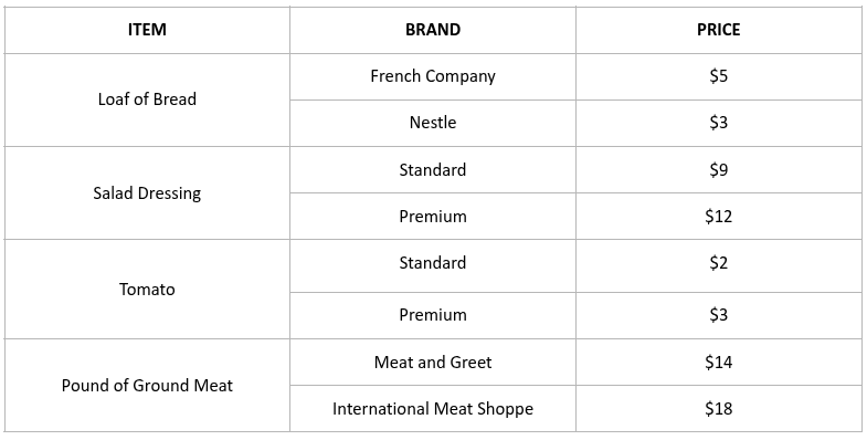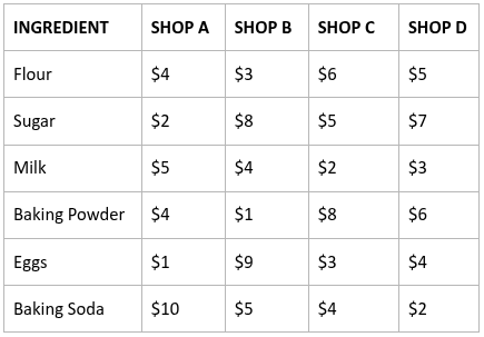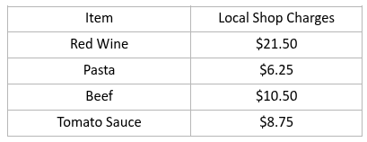 This week, the comparison will be based on Spaghetti Bolognese. The ingredients and their prices at another local supermarket are shown in the table below.