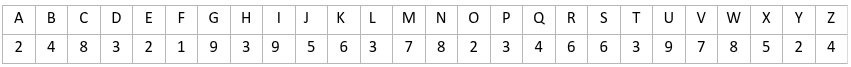 Agatha and Frances want to use a code to send secret messages to each other. In the code, each letter of the alphabet is represented by a one-digit number, as follows: