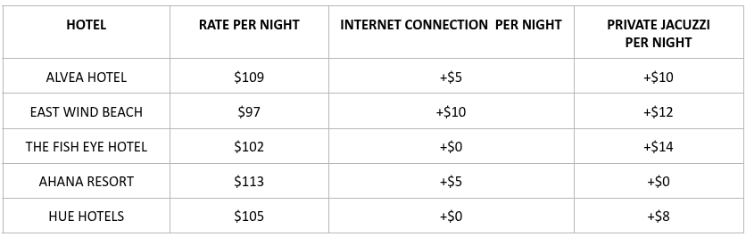 There are five hotels that they can choose from.