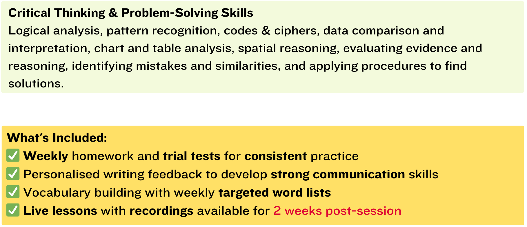 All lessons are live and will be recorded for review up to 2 weeks after the course ends. This gives your child the opportunity to revise and reinforce what they’ve learned.