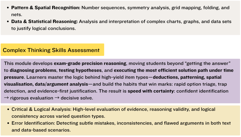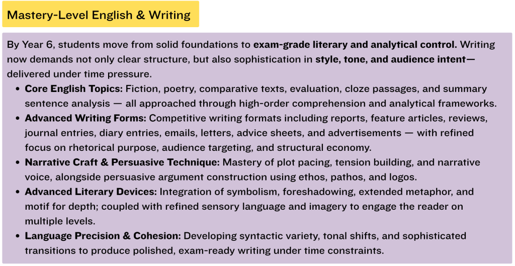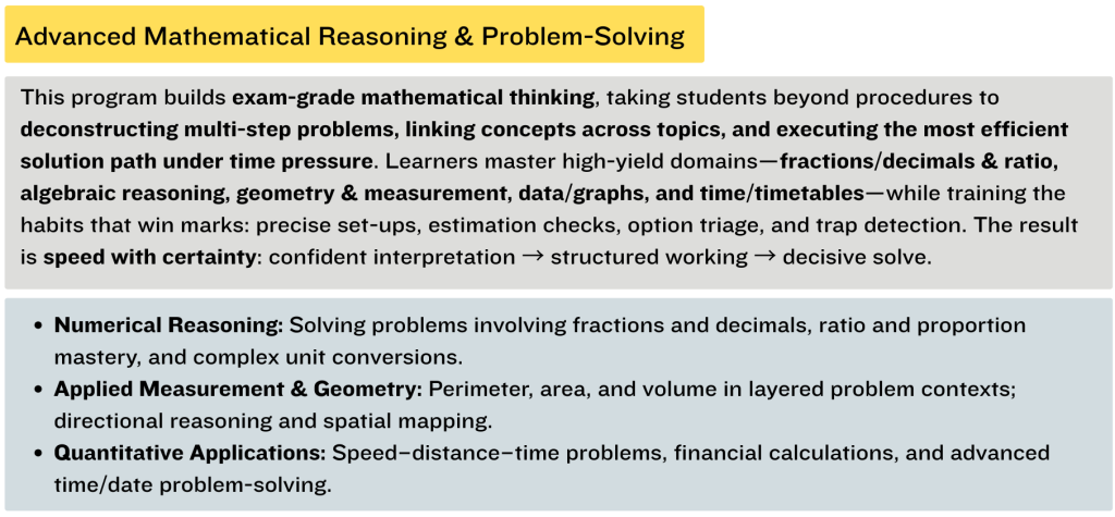 SUBJECT SPECIALISATION: English, Writing, Math, Thinking Skills & Trial Test.